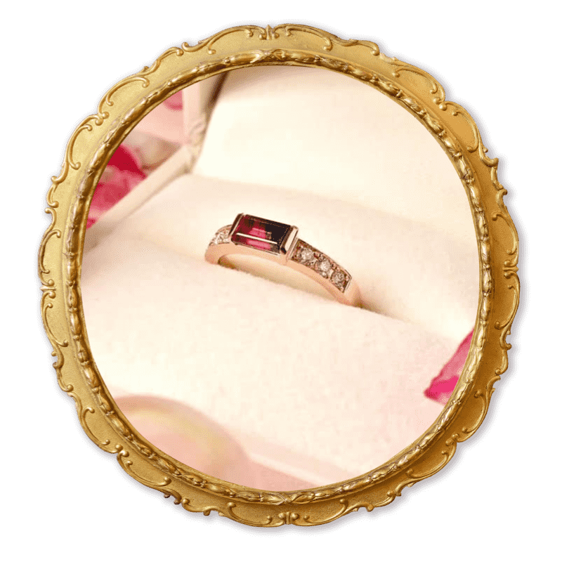 宝石の配置など、何パターンも検討してくださった上に予算をみながら、いろいろとサービスもしてくれました。